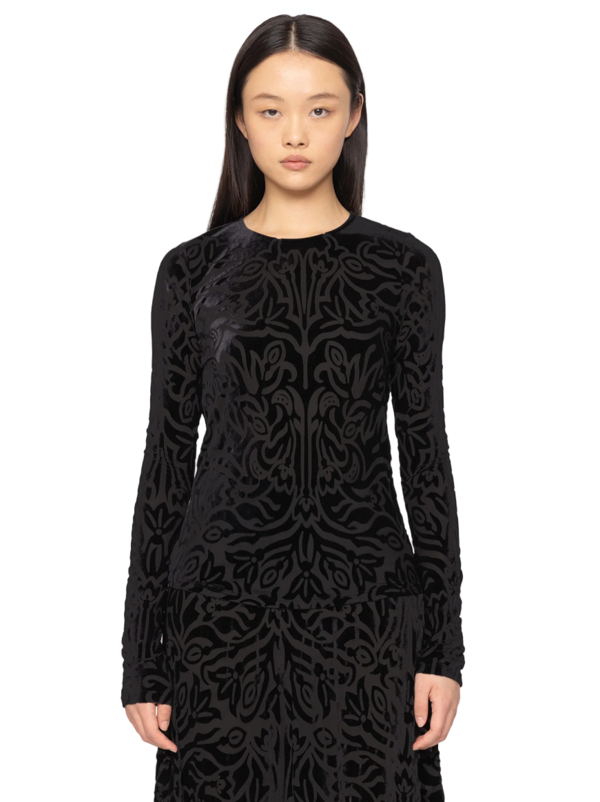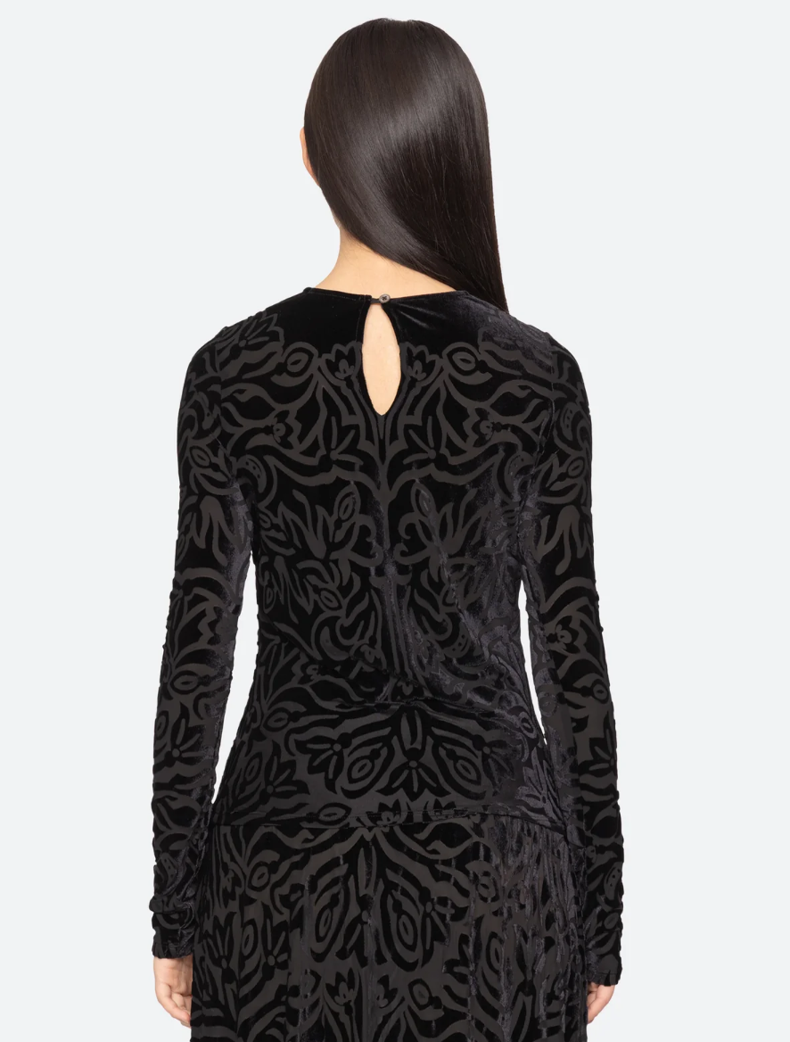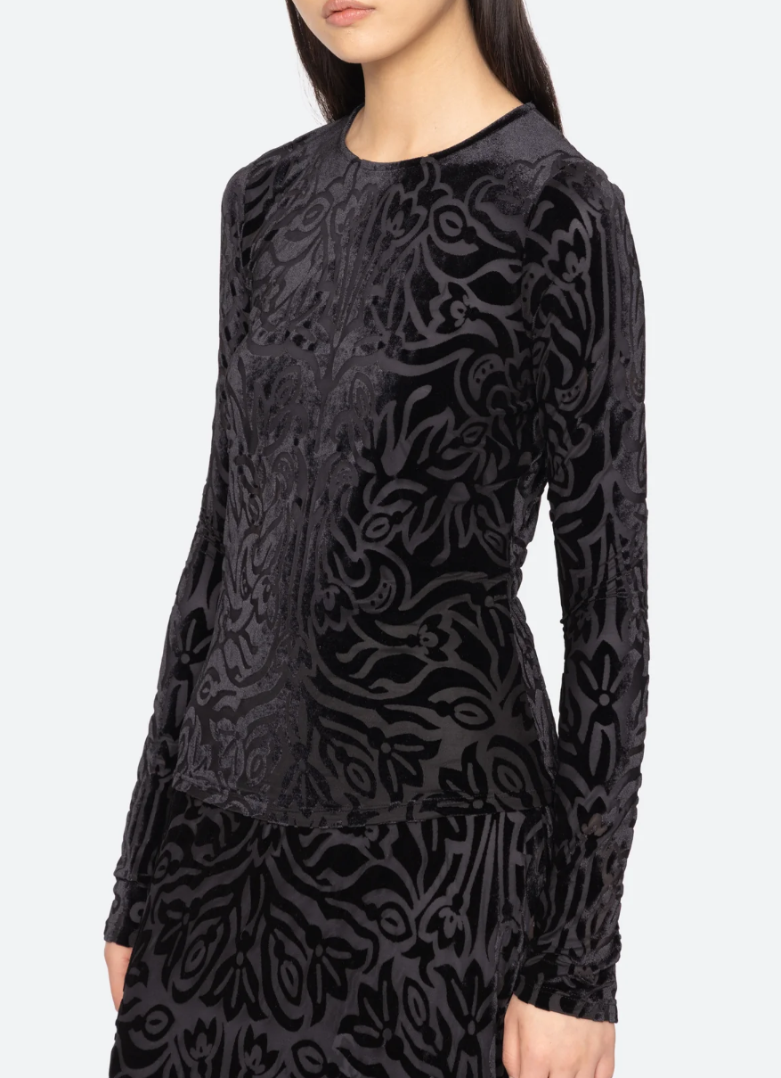 • The Julie long sleeve top is crafted from floral patterned burnout velvet, offering a rich play of texture and transparency