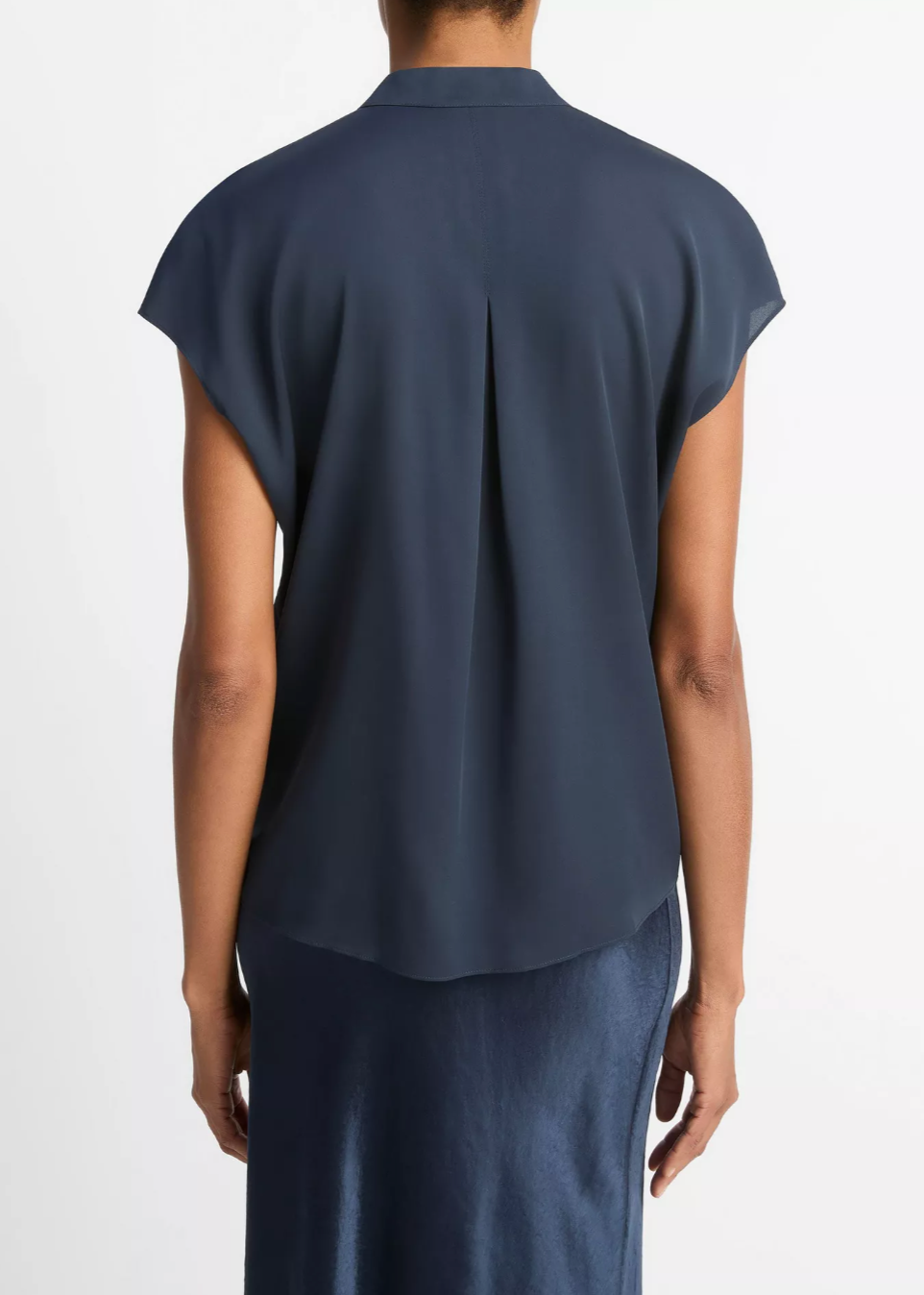 Vince Cap Sleeve Blouse w/ Hidden Placket in Coastal/Black