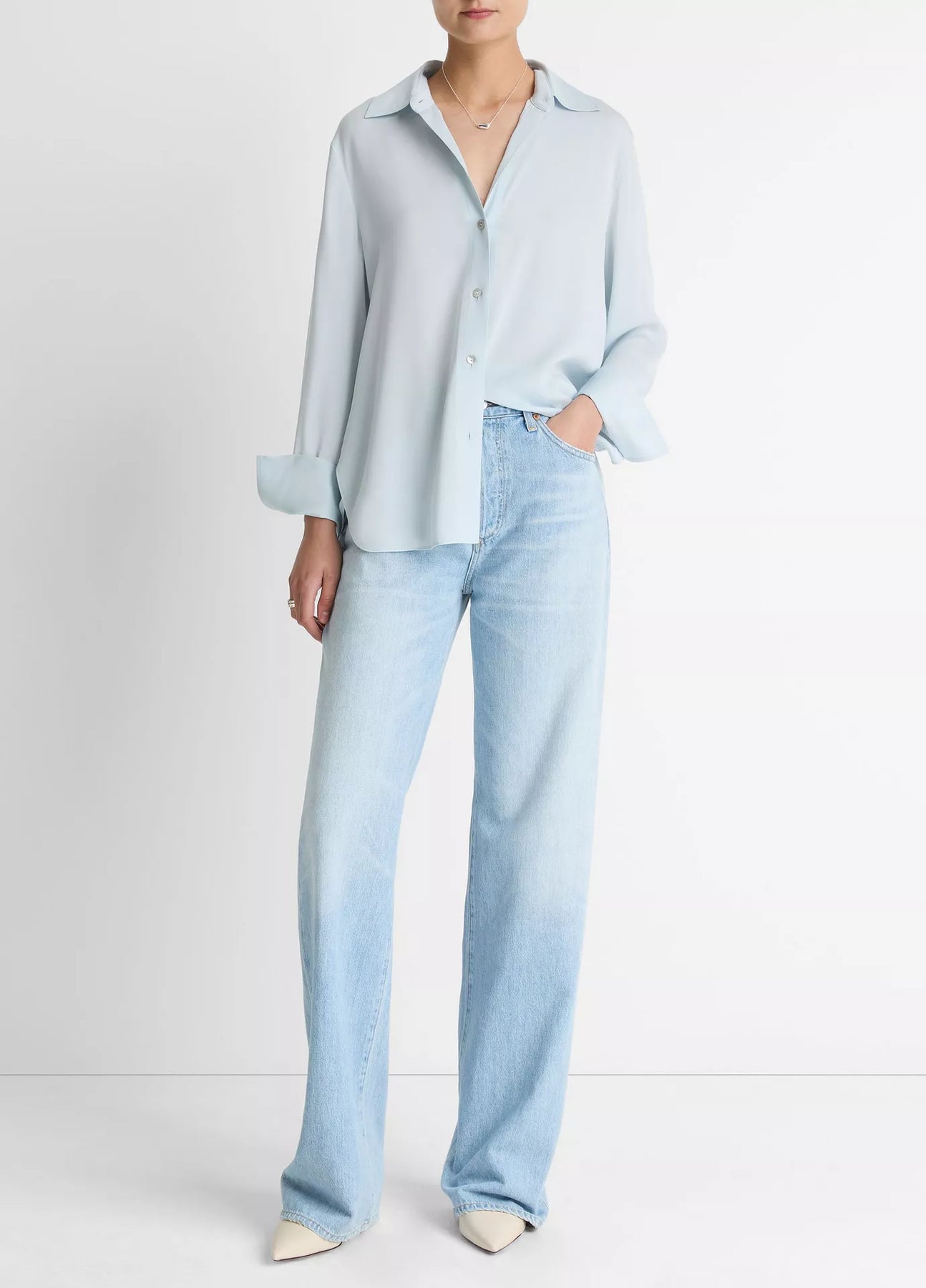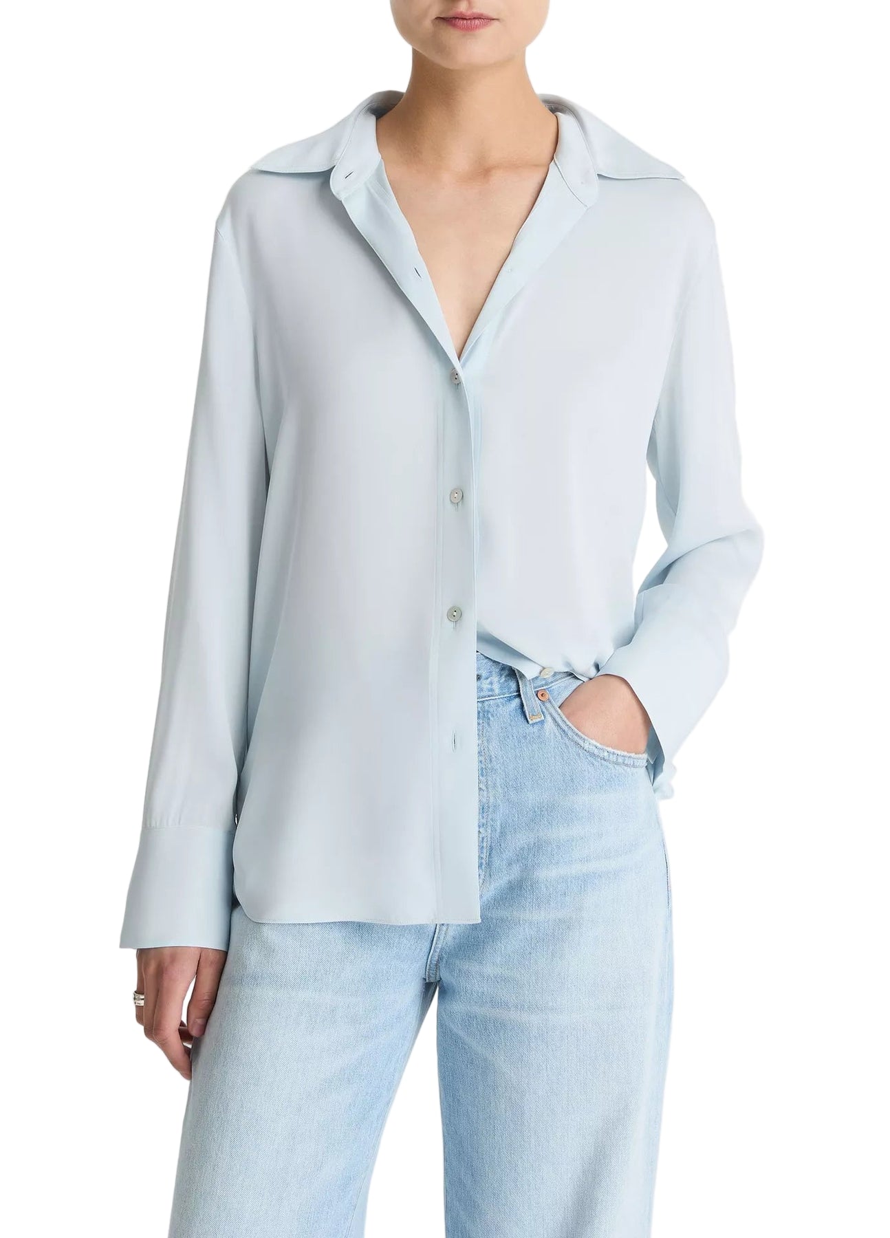 - A staple throughout the year, this classic button-front blouse is cut from soft and lightweight stretch-silk crêpe de Chine