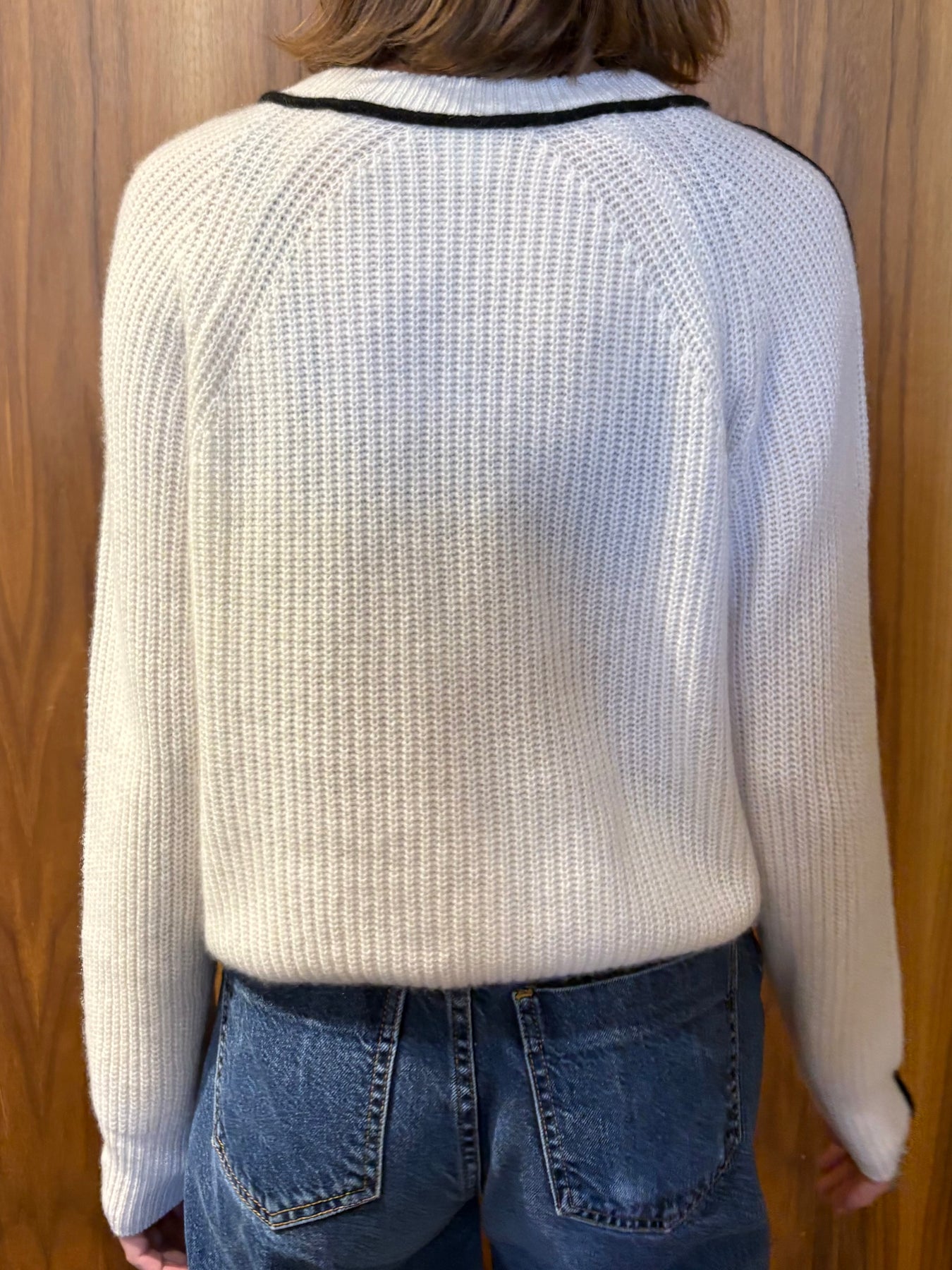 Autumn Cashmere Shaker Crew Contrast Piping in Chalk Combo