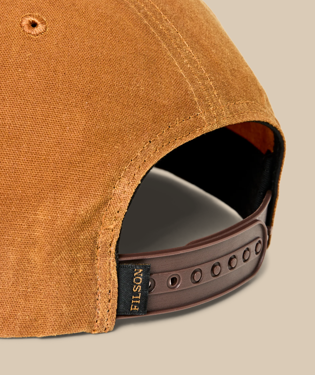 • A classic five-panel cap built with weather-resistant waxed cotton