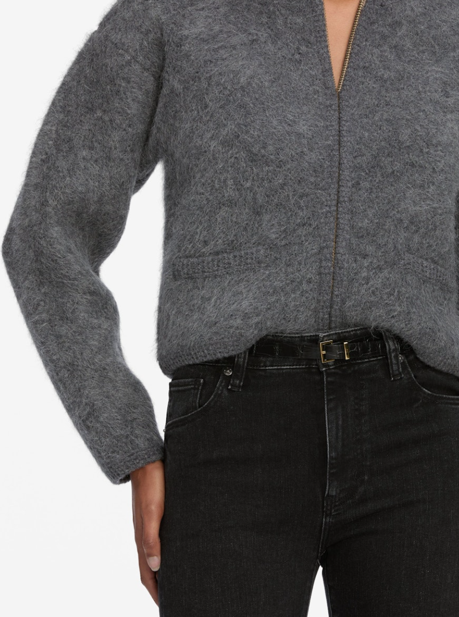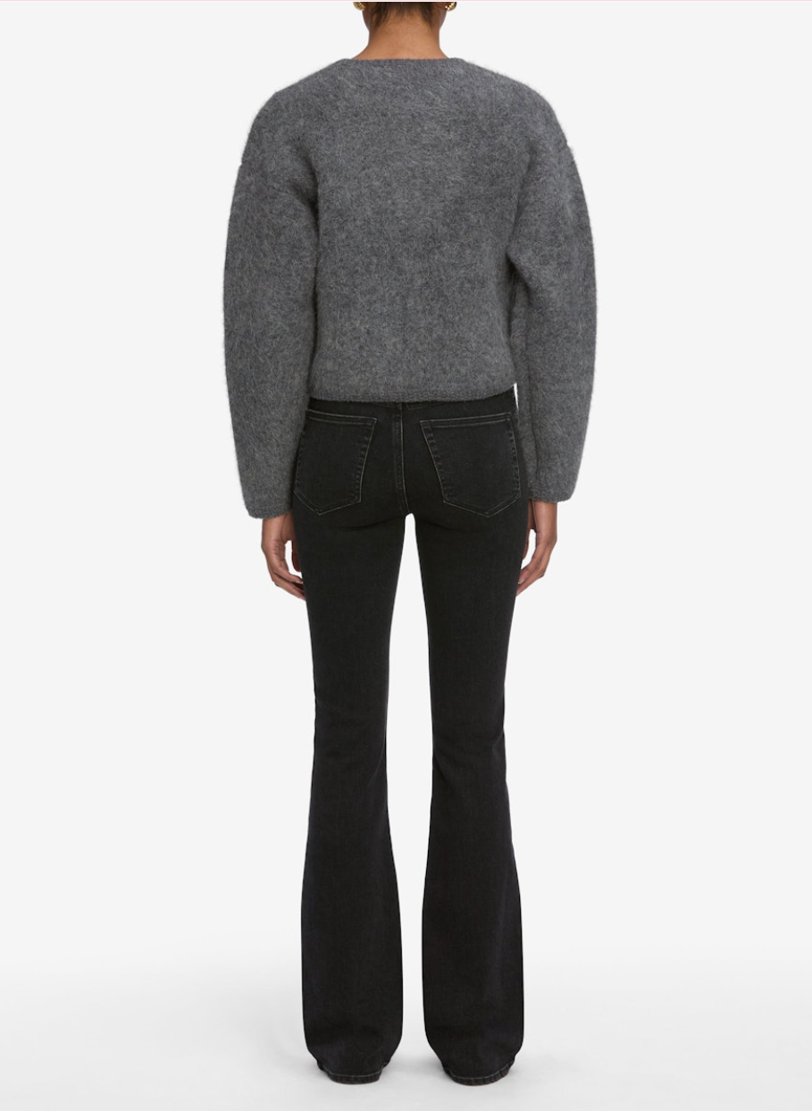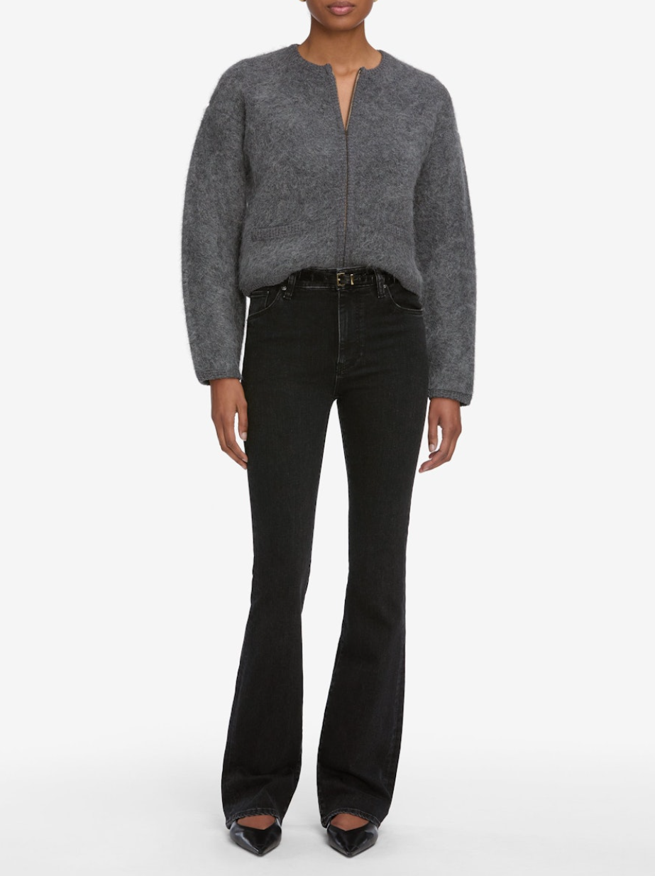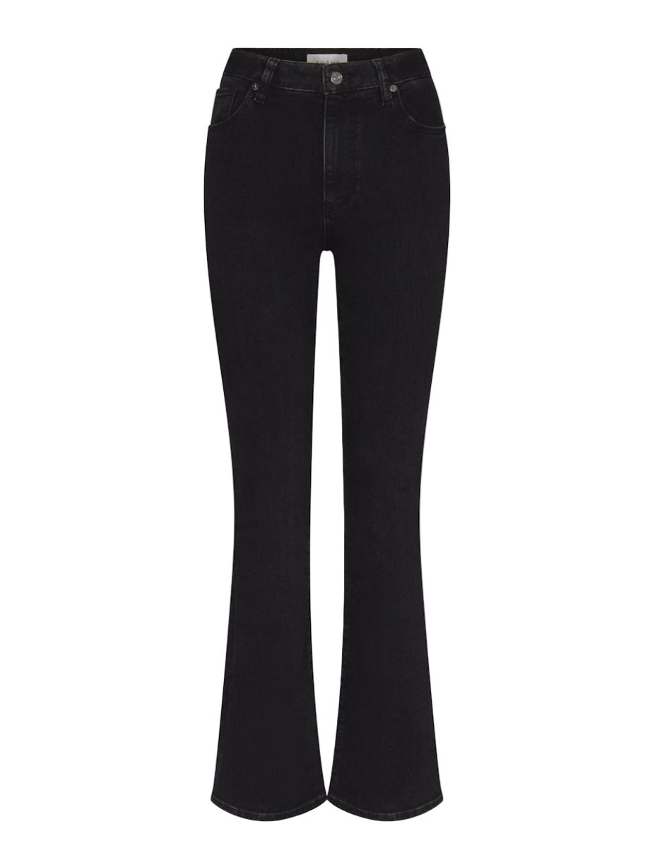 • This jean offers a high-rise, full-length inseam, and breaks into a true boot leg