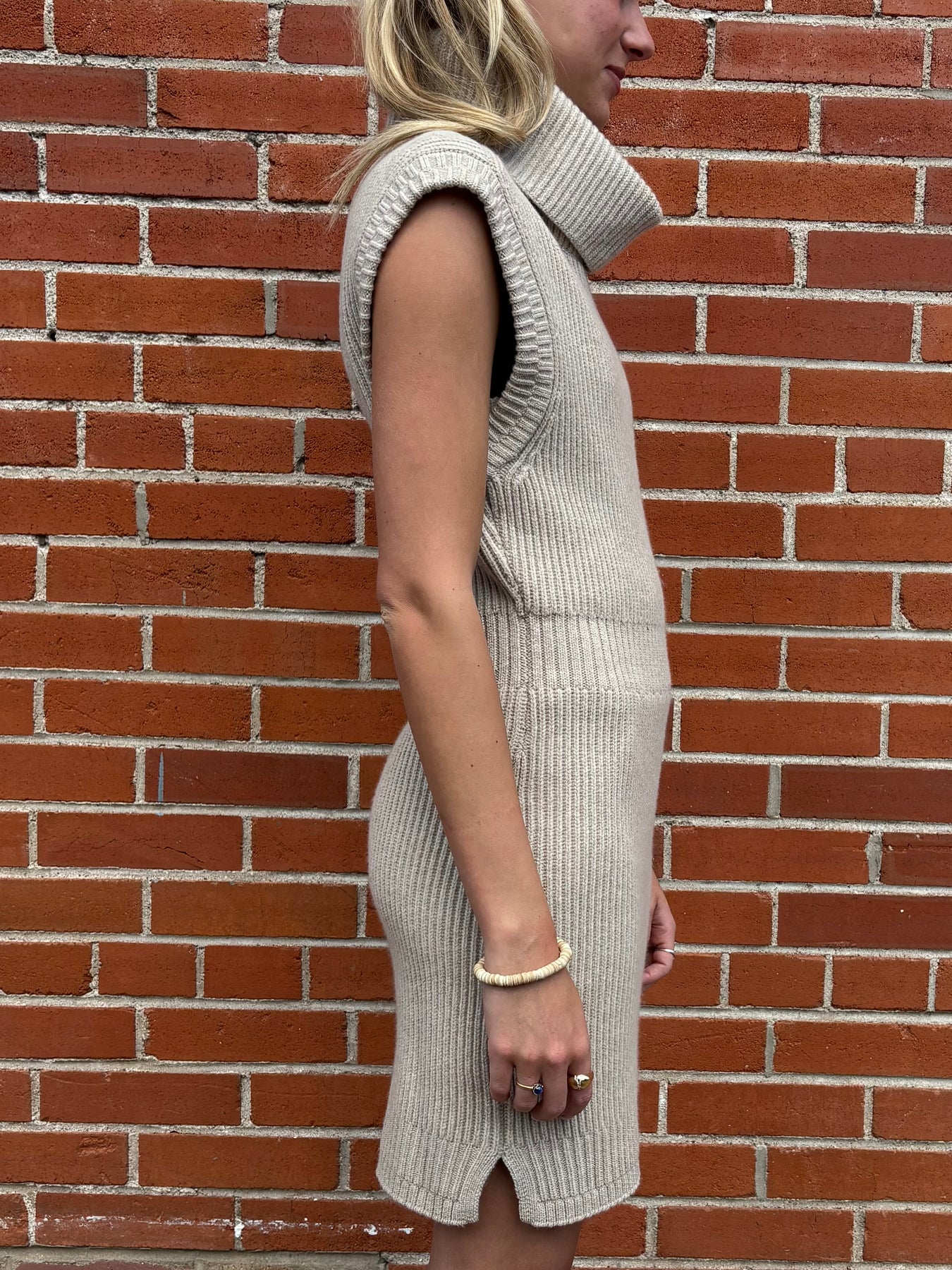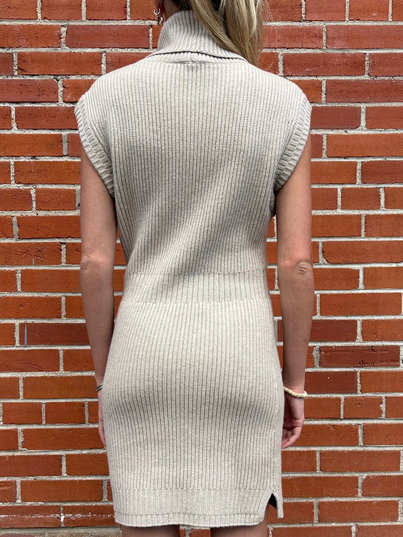 • Pull on sweater dress, fitted body with a dramatic turtle neck