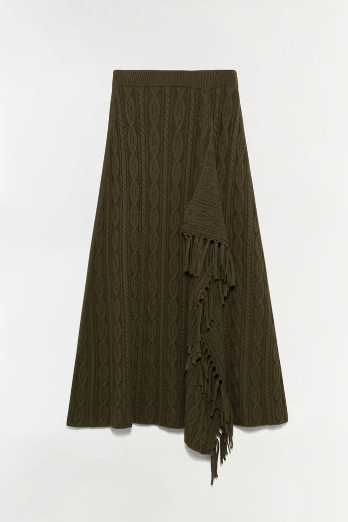 • Rendered in a richly patterned cable knit, this wool midi skirt falls in a sweeping line that wraps and flows