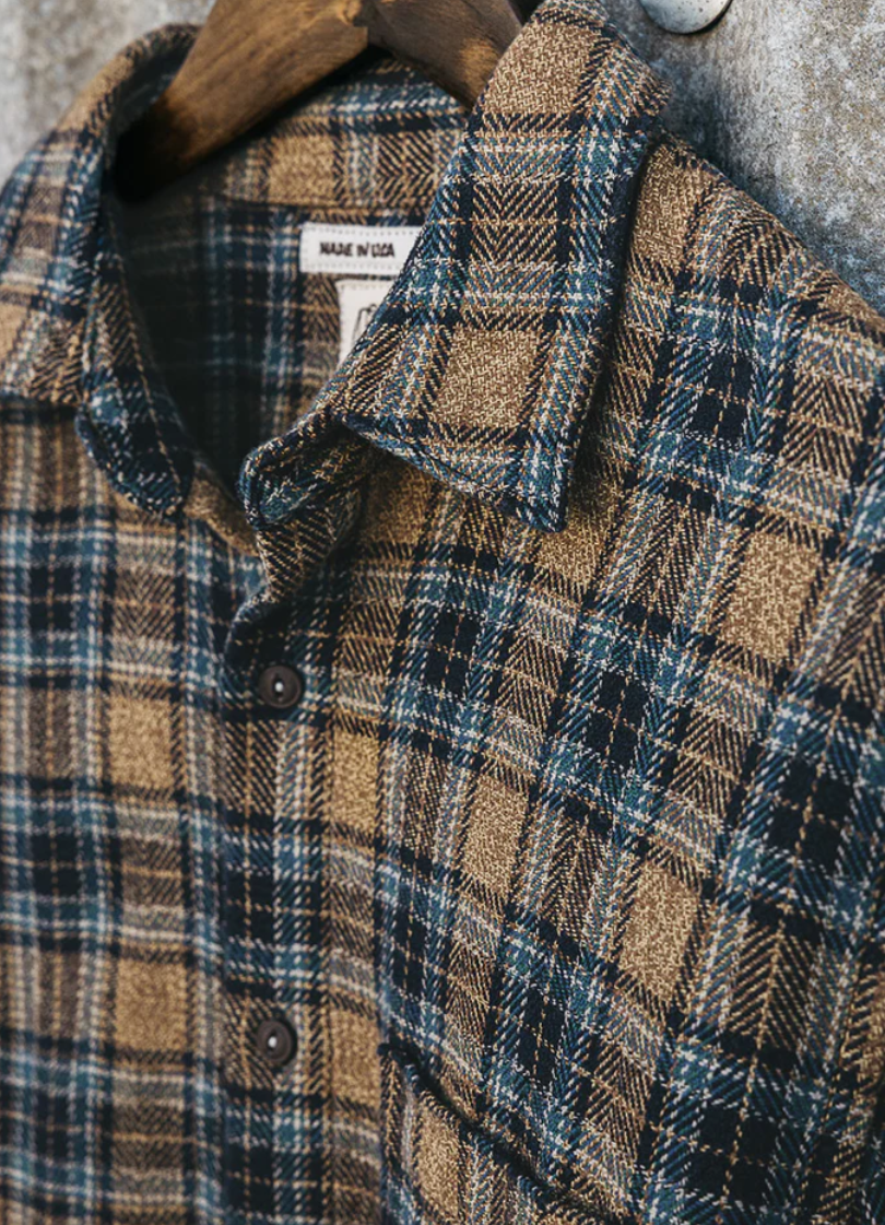 • Slim fit. Made with 9oz triple twisted plaid fabric, contoured hem, durable buttons, single breast pocket