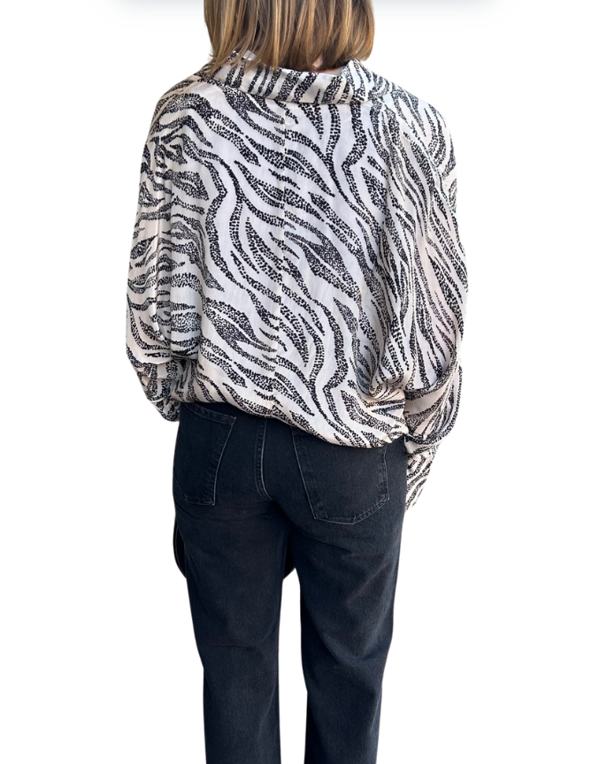 • The Bowie Clary Top from Maria Cher features a flowy, slightly slouchy silhouette, button front, and long sleeves