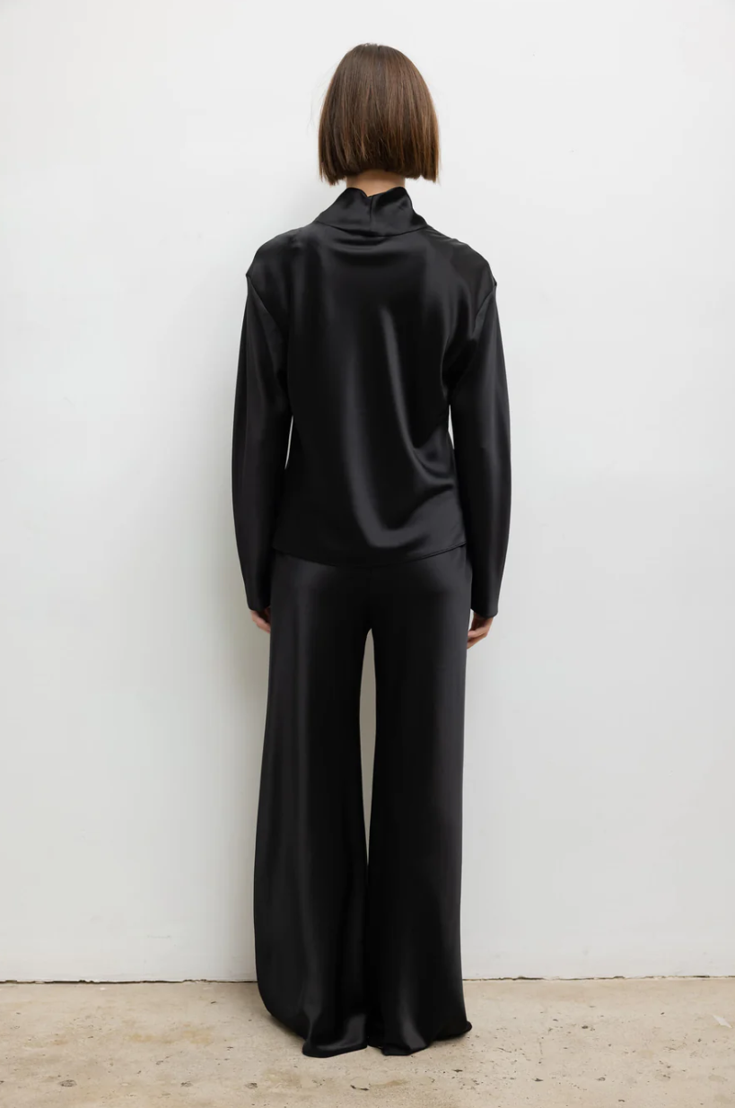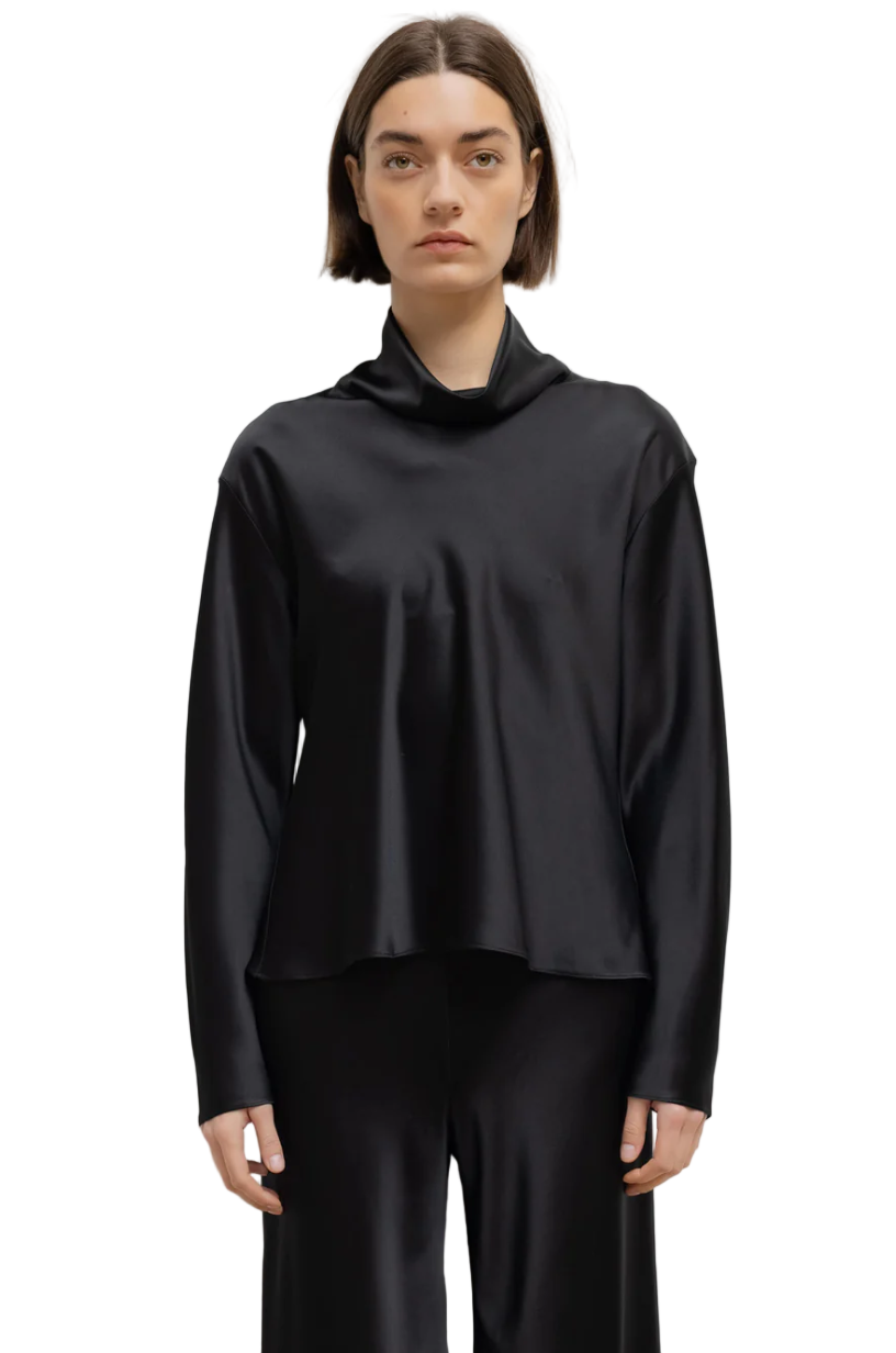 • Cut in our Japanese-crafted satin, The Barb Long Sleeve Cowl Neck is a beautifully draped long sleeve top featuring a soft cowl neck