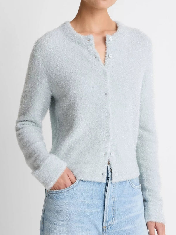 {"id":8753416863875,"title":"Vince Tinsel Eyelash Cardi in Glacier","handle":"vince-tinsel-eyelash-cardi-in-glacier","description":"\u003cp\u003e \u003cu\u003e\u003cstrong\u003eDESCRIPTION\u003c\/strong\u003e\u003c\/u\u003e\u003c\/p\u003e\n\u003cul\u003e\n \u003cli\u003eAvailable in Glacier\u003c\/li\u003e\n \u003cli\u003e A fuzzy, metallic eyelash knit adds a soft, featherweight finish and subtle shine to this classic cardigan\u003c\/li\u003e\n \u003cli\u003eButton-front closure\u003c\/li\u003e\n\u003c\/ul\u003e\n\u003cp\u003e\u003cu\u003e\u003cstrong\u003eDETAILS \u0026amp; FIT \u003c\/strong\u003e\u003c\/u\u003e\u003c\/p\u003e\n\u003cul\u003e\n \u003cli\u003eFits true to size\u003c\/li\u003e\n \u003cli\u003e Model is 5'10\" and wears a size S\u003c\/li\u003e\n \u003cli\u003e62% Nylon, 22% polyester, 16% metallic fibers\u003c\/li\u003e\n \u003cli\u003eHand wash cold, do not bleach\u003c\/li\u003e\n \u003cli\u003eReshape and lay flat to dry, warm iron if necessary or dry clean\u003c\/li\u003e\n\u003c\/ul\u003e","published_at":"2025-11-04T15:14:15-07:00","created_at":"2025-11-04T12:47:42-07:00","vendor":"VINCE","type":"","tags":["Cardigan","Clothing","New Arrivals","Sweaters","Women's"],"price":34800,"price_min":34800,"price_max":34800,"available":false,"price_varies":false,"compare_at_price":34800,"compare_at_price_min":34800,"compare_at_price_max":34800,"compare_at_price_varies":false,"variants":[{"id":45815586685059,"title":"Glacier \/ XSmall","option1":"Glacier","option2":"XSmall","option3":null,"sku":"300921","requires_shipping":true,"taxable":true,"featured_image":{"id":44748189204611,"product_id":8753416863875,"position":1,"created_at":"2025-11-04T12:47:43-07:00","updated_at":"2025-11-04T15:14:10-07:00","alt":null,"width":660,"height":772,"src":"\/\/\/cdn\/shop\/files\/1f573516Screenshot_4-11-2025_124339_www.vince.com.jpg?v=1762294450","variant_ids":[45815586685059,45815586717827,45815586750595,45815586783363]},"available":false,"name":"Vince Tinsel Eyelash Cardi in Glacier - Glacier \/ XSmall","public_title":"Glacier \/ XSmall","options":["Glacier","XSmall"],"price":34800,"weight":0,"compare_at_price":34800,"inventory_management":"shopify","barcode":null,"featured_media":{"alt":null,"id":35956943618179,"position":1,"preview_image":{"aspect_ratio":0.855,"height":772,"width":660,"src":"\/\/\/cdn\/shop\/files\/1f573516Screenshot_4-11-2025_124339_www.vince.com.jpg?v=1762294450"}},"requires_selling_plan":false,"selling_plan_allocations":[]},{"id":45815586717827,"title":"Glacier \/ Small","option1":"Glacier","option2":"Small","option3":null,"sku":"300922","requires_shipping":true,"taxable":true,"featured_image":{"id":44748189204611,"product_id":8753416863875,"position":1,"created_at":"2025-11-04T12:47:43-07:00","updated_at":"2025-11-04T15:14:10-07:00","alt":null,"width":660,"height":772,"src":"\/\/\/cdn\/shop\/files\/1f573516Screenshot_4-11-2025_124339_www.vince.com.jpg?v=1762294450","variant_ids":[45815586685059,45815586717827,45815586750595,45815586783363]},"available":false,"name":"Vince Tinsel Eyelash Cardi in Glacier - Glacier \/ Small","public_title":"Glacier \/ Small","options":["Glacier","Small"],"price":34800,"weight":0,"compare_at_price":34800,"inventory_management":"shopify","barcode":null,"featured_media":{"alt":null,"id":35956943618179,"position":1,"preview_image":{"aspect_ratio":0.855,"height":772,"width":660,"src":"\/\/\/cdn\/shop\/files\/1f573516Screenshot_4-11-2025_124339_www.vince.com.jpg?v=1762294450"}},"requires_selling_plan":false,"selling_plan_allocations":[]},{"id":45815586750595,"title":"Glacier \/ Medium","option1":"Glacier","option2":"Medium","option3":null,"sku":"300923","requires_shipping":true,"taxable":true,"featured_image":{"id":44748189204611,"product_id":8753416863875,"position":1,"created_at":"2025-11-04T12:47:43-07:00","updated_at":"2025-11-04T15:14:10-07:00","alt":null,"width":660,"height":772,"src":"\/\/\/cdn\/shop\/files\/1f573516Screenshot_4-11-2025_124339_www.vince.com.jpg?v=1762294450","variant_ids":[45815586685059,45815586717827,45815586750595,45815586783363]},"available":false,"name":"Vince Tinsel Eyelash Cardi in Glacier - Glacier \/ Medium","public_title":"Glacier \/ Medium","options":["Glacier","Medium"],"price":34800,"weight":0,"compare_at_price":34800,"inventory_management":"shopify","barcode":null,"featured_media":{"alt":null,"id":35956943618179,"position":1,"preview_image":{"aspect_ratio":0.855,"height":772,"width":660,"src":"\/\/\/cdn\/shop\/files\/1f573516Screenshot_4-11-2025_124339_www.vince.com.jpg?v=1762294450"}},"requires_selling_plan":false,"selling_plan_allocations":[]},{"id":45815586783363,"title":"Glacier \/ Large","option1":"Glacier","option2":"Large","option3":null,"sku":"300924","requires_shipping":true,"taxable":true,"featured_image":{"id":44748189204611,"product_id":8753416863875,"position":1,"created_at":"2025-11-04T12:47:43-07:00","updated_at":"2025-11-04T15:14:10-07:00","alt":null,"width":660,"height":772,"src":"\/\/\/cdn\/shop\/files\/1f573516Screenshot_4-11-2025_124339_www.vince.com.jpg?v=1762294450","variant_ids":[45815586685059,45815586717827,45815586750595,45815586783363]},"available":false,"name":"Vince Tinsel Eyelash Cardi in Glacier - Glacier \/ Large","public_title":"Glacier \/ Large","options":["Glacier","Large"],"price":34800,"weight":0,"compare_at_price":34800,"inventory_management":"shopify","barcode":null,"featured_media":{"alt":null,"id":35956943618179,"position":1,"preview_image":{"aspect_ratio":0.855,"height":772,"width":660,"src":"\/\/\/cdn\/shop\/files\/1f573516Screenshot_4-11-2025_124339_www.vince.com.jpg?v=1762294450"}},"requires_selling_plan":false,"selling_plan_allocations":[]}],"images":["\/\/\/cdn\/shop\/files\/1f573516Screenshot_4-11-2025_124339_www.vince.com.jpg?v=1762294450","\/\/\/cdn\/shop\/files\/21d966ccScreenshot_4-11-2025_124411_www.vince.com.jpg?v=1762285665","\/\/\/cdn\/shop\/files\/4787381fScreenshot_4-11-2025_124421_www.vince.com.jpg?v=1762285665"],"featured_image":"\/\/\/cdn\/shop