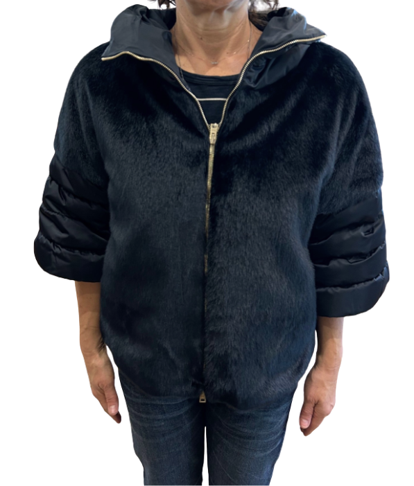 <img height="1" width="1" style="display:none" src="https://www.facebook.com/tr?id=1906762400081693&amp;ev=PageView&amp;noscript=1"/> Herno Satin SS Faux Fur Jacket in Black available from Weekends Boulder | Your Local Shopping specialist. Skip to content