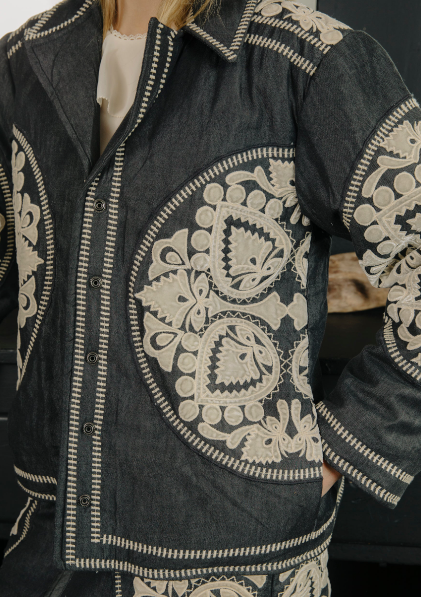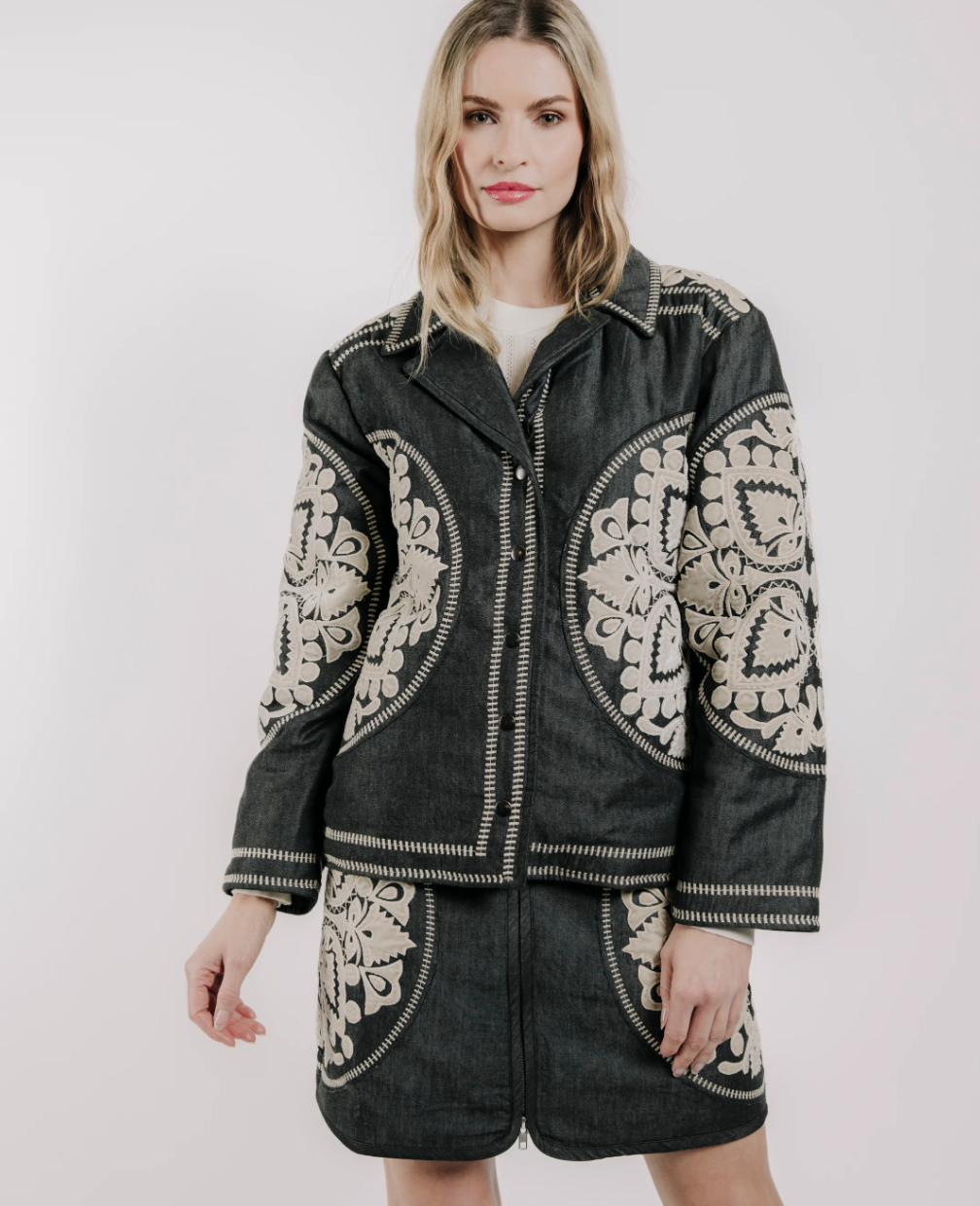{"id":8728707235971,"title":"Love the Label Jamie Quilted Jacket","handle":"love-the-label-jamie-quilted-jacket","description":"\u003cp\u003e\u003cu\u003e\u003cstrong\u003eDESCRIPTION\u003c\/strong\u003e\u003c\/u\u003e\u003c\/p\u003e\n\u003cul\u003e\n \u003cli\u003eAvailable in Black\u003c\/li\u003e\n \u003cli\u003eThe Jamie Jacket is a quilted charcoal denim button-up, adorned with enlarged velvet ivory applique in striking circular motifs\u003c\/li\u003e\n \u003cli\u003eFeaturing a structured silhouette, classic collar, and front snap closure\u003c\/li\u003e\n\u003c\/ul\u003e\n\u003cp\u003e\u003cu\u003e\u003cstrong\u003eDETAILS \u0026amp; FIT \u003c\/strong\u003e\u003c\/u\u003e\u003c\/p\u003e\n\u003cul\u003e\n \u003cli\u003eFits true to size\u003c\/li\u003e\n \u003cli\u003eCropped length, boxy silhouette\u003c\/li\u003e\n \u003cli\u003e100% Cotton\u003c\/li\u003e\n\u003c\/ul\u003e","published_at":"2025-10-06T16:09:30-06:00","created_at":"2025-10-06T15:58:24-06:00","vendor":"LOVE THE LABEL","type":"","tags":["Blazers","Clothing","coats","embroidered jacket","Jackets","Kace jacket","love the label","Outerwear","Women's"],"price":55000,"price_min":55000,"price_max":55000,"available":true,"price_varies":false,"compare_at_price":55000,"compare_at_price_min":55000,"compare_at_price_max":55000,"compare_at_price_varies":false,"variants":[{"id":45730461941891,"title":"Black \/ XSmall\/Small","option1":"Black","option2":"XSmall\/Small","option3":null,"sku":"288979","requires_shipping":true,"taxable":true,"featured_image":{"id":44428721225859,"product_id":8728707235971,"position":1,"created_at":"2025-10-06T15:58:25-06:00","updated_at":"2025-10-06T16:09:23-06:00","alt":null,"width":814,"height":1213,"src":"\/\/\/cdn\/shop\/files\/12fbef34Screenshot_202025-10-06_20154849.png?v=1759788563","variant_ids":[45730461941891,45730461974659]},"available":true,"name":"Love the Label Jamie Quilted Jacket - Black \/ XSmall\/Small","public_title":"Black \/ XSmall\/Small","options":["Black","XSmall\/Small"],"price":55000,"weight":0,"compare_at_price":55000,"inventory_management":"shopify","barcode":null,"featured_media":{"alt":null,"id":35787933515907,"position":1,"preview_image":{"aspect_ratio":0.671,"height":1213,"width":814,"src":"\/\/\/cdn\/shop\/files\/12fbef34Screenshot_202025-10-06_20154849.png?v=1759788563"}},"requires_selling_plan":false,"selling_plan_allocations":[]},{"id":45730461974659,"title":"Black \/ Medium\/Large","option1":"Black","option2":"Medium\/Large","option3":null,"sku":"288980","requires_shipping":true,"taxable":true,"featured_image":{"id":44428721225859,"product_id":8728707235971,"position":1,"created_at":"2025-10-06T15:58:25-06:00","updated_at":"2025-10-06T16:09:23-06:00","alt":null,"width":814,"height":1213,"src":"\/\/\/cdn\/shop\/files\/12fbef34Screenshot_202025-10-06_20154849.png?v=1759788563","variant_ids":[45730461941891,45730461974659]},"available":false,"name":"Love the Label Jamie Quilted Jacket - Black \/ Medium\/Large","public_title":"Black \/ Medium\/Large","options":["Black","Medium\/Large"],"price":55000,"weight":0,"compare_at_price":55000,"inventory_management":"shopify","barcode":null,"featured_media":{"alt":null,"id":35787933515907,"position":1,"preview_image":{"aspect_ratio":0.671,"height":1213,"width":814,"src":"\/\/\/cdn\/shop\/files\/12fbef34Screenshot_202025-10-06_20154849.png?v=1759788563"}},"requires_selling_plan":false,"selling_plan_allocations":[]}],"images":["\/\/\/cdn\/shop\/files\/12fbef34Screenshot_202025-10-06_20154849.png?v=1759788563","\/\/\/cdn\/shop\/files\/d9a3cca1Screenshot_202025-10-06_20154902.png?v=1759787907","\/\/\/cdn\/shop\/files\/f51c2110Screenshot_202025-10-06_20154913.png?v=1759787907","\/\/\/cdn\/shop\/files\/50d66b67Screenshot_202025-10-06_20154923.png?v=1759787907"],"featured_image":"\/\/\/cdn\/shop\/files\/12fbef34Screenshot_202025-10-06_20154849.png?v=1759788563","options":["Color","Size"],"media":[{"alt":null,"id":35787933515907,"position":1,"preview_image":{"aspect_ratio":0.671,"height":1213,"width":814,"src":"\/\/\/cdn\/shop\/files\/12fbef34Screenshot_202025-10-06_20154849.png?v=1759788563"},"aspect_ratio":0.671,"height":1213,"media_type":"image","src":"\/\/\/cdn\/shop\/files\/12fbef34Screenshot_202025-10-06_20154849.png?v=1759788563","width":814},{"alt":null,"id":35787933548675,"position":2,"preview_image":{"aspect_ratio":0.812,"height":1241,"width":1008,"src":"\/\/\/cdn\/shop\/files\/d9a3cca1Screenshot_202025-10-06_20154902.png?v=1759787907"},"aspect_ratio":0.812,"height":1241,"media_type":"image","src":"\/\/\/cdn\/shop\/files\/d9a3cca1Screenshot_202025-10-06_20154902.png?v=1759787907","width":1008},{"alt":null,"id":35787933581443,"position":3,"preview_image":{"aspect_ratio":0.816,"height":1231,"width":1004,"src":"\/\/\/cdn\/shop\/files\/f51c2110Screenshot_202025-10-06_20154913.png?v=1759787907"},"aspect_ratio":0.816,"height":1231,"media_type":"image","src":"\/\/\/cdn\/shop\/files\/f51c2110Screenshot_202025-10-06_20154913.png?v=1759787907","width":1004},{"alt":null,"id":35787933614211,"position":4,"preview_image":{"aspect_ratio":0.705,"height":1231,"width":868,"src":"\/\/\/cdn\/shop\/files\/50d66b67Screenshot_202025-10-06_20154923.png?v=1759787907"},"aspect_ratio":0.705,"height":1231,"media_type":"image","src":"\/\/\/cdn\/shop\/files\/50d66b67Screenshot_202025-10-06_20154923.png?v=1759787907","width":868}],"requires_selling_plan":false,"selling_plan_groups":[],"content":"\u003cp\u003e\u003cu\u003e\u003cstrong\u003eDESCRIPTION\u003c\/strong\u003e\u003c\/u\u003e\u003c\/p\u003e\n\u003cul\u003e\n \u003cli\u003eAvailable in Black\u003c\/li\u003e\n \u003cli\u003eThe Jamie Jacket is a quilted charcoal denim button-up, adorned with enlarged velvet ivory applique in striking circular motifs\u003c\/li\u003e\n \u003cli\u003eFeaturing a structured silhouette, classic collar, and front snap closure\u003c\/li\u003e\n\u003c\/ul\u003e\n\u003cp\u003e\u003cu\u003e\u003cstrong\u003eDETAILS \u0026amp; FIT \u003c\/strong\u003e\u003c\/u\u003e\u003c\/p