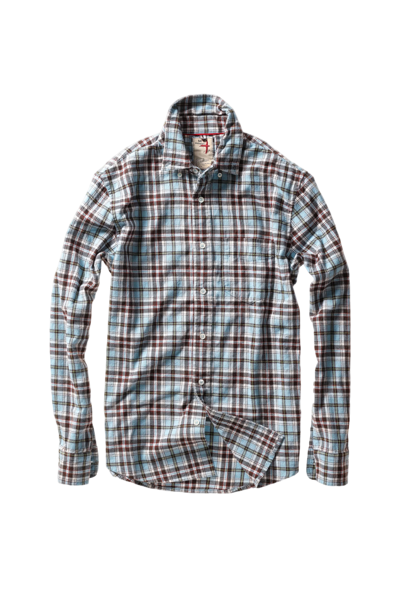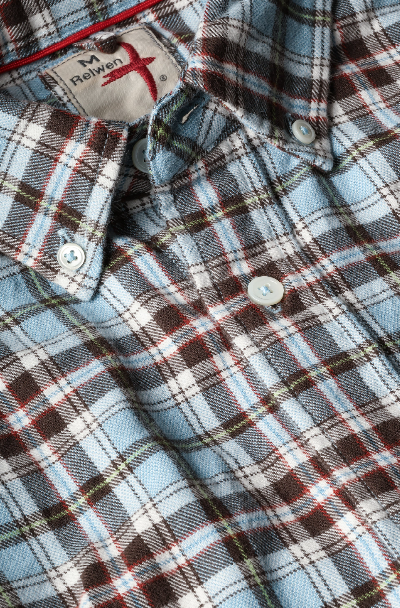 Relwen Flyweight Flannel in Light Blue/Brown Plaid