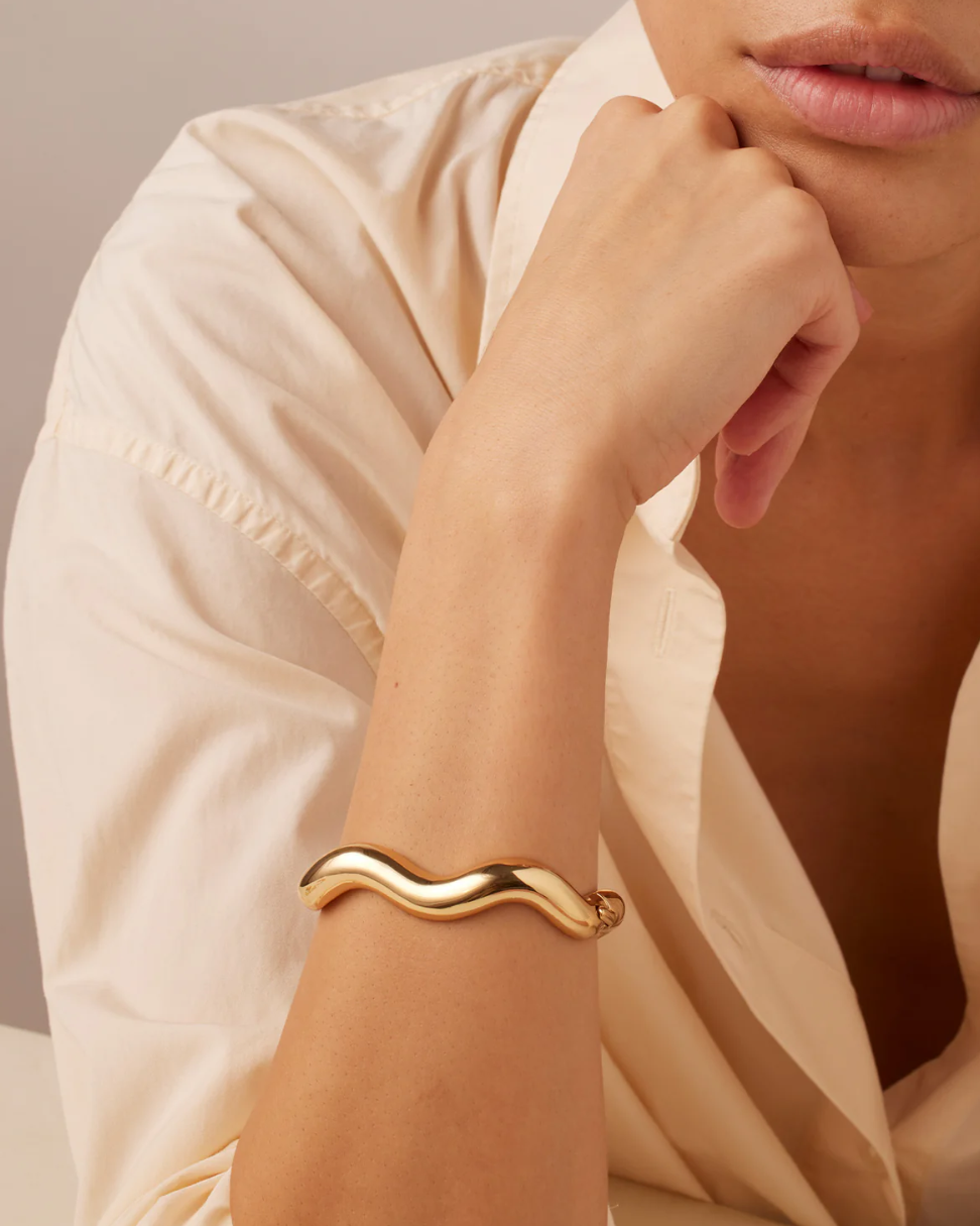 • For double the curves, stack with another Ola Bangle, or mix in a silver version for a two-tone effect