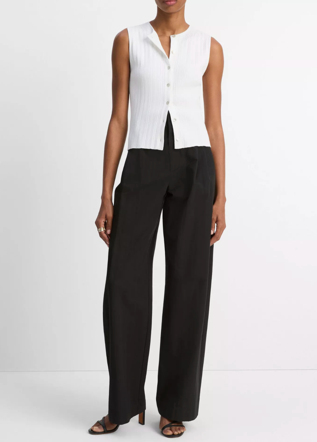 • This button-front shell is knit from a stretchy Italian blend of cotton and nylon that's light, soft and breathable