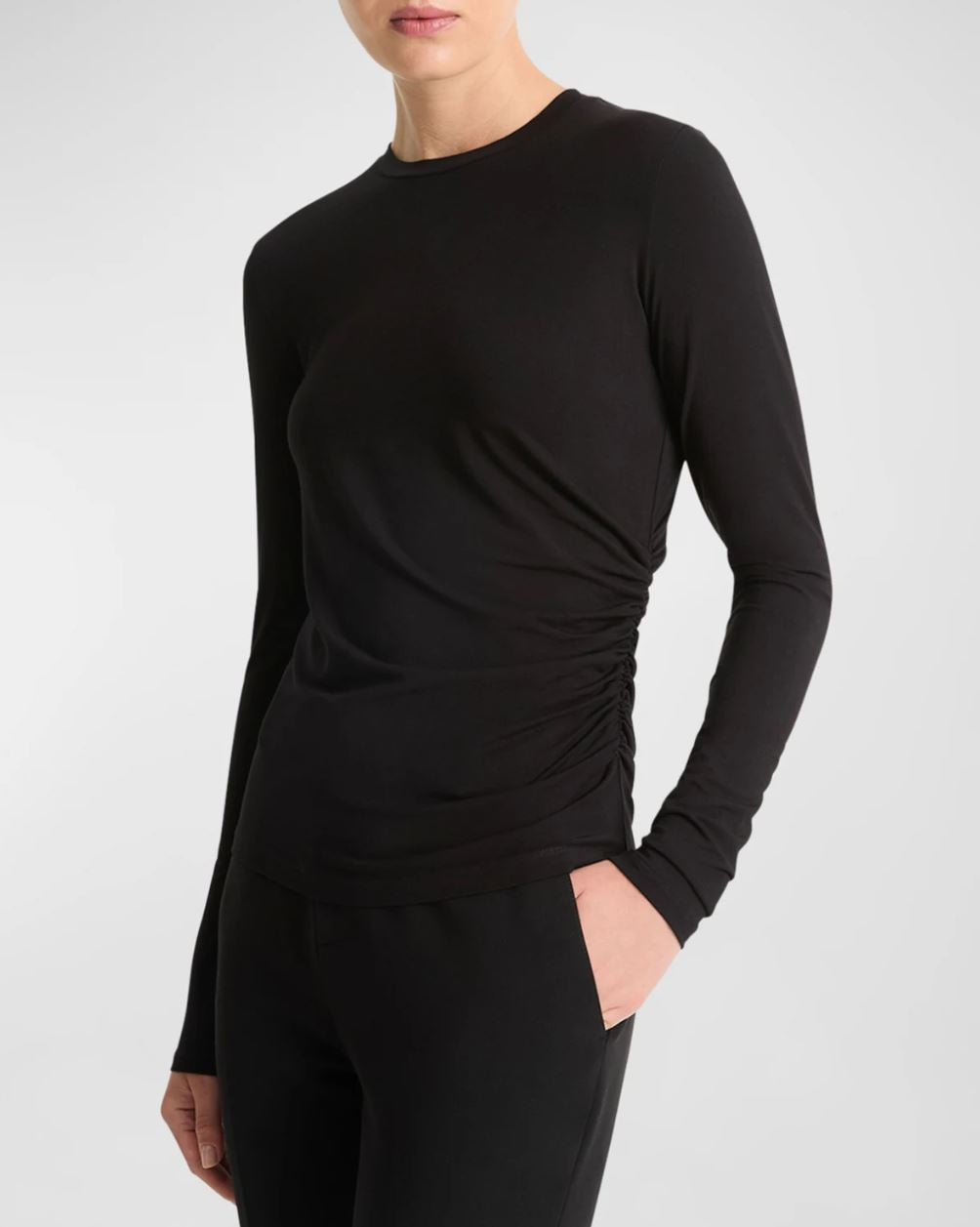 {"id":8430086881411,"title":"Vince Drape L\/S Crew","handle":"vince-drape-l-s-crew","description":"\u003cp\u003e\u003cu\u003e\u003cstrong\u003eDESCRIPTION \u003c\/strong\u003e\u003c\/u\u003e\u003c\/p\u003e\n\u003cul\u003e\n \u003cli\u003eAvailable in Black\u003c\/li\u003e\n \u003cli\u003eVince essentials top elevated by side draping\u003c\/li\u003e\n \u003cli\u003eCrew neckline\u003c\/li\u003e\n \u003cli\u003eLong sleeves\u003c\/li\u003e\n \u003cli\u003eHip length\u003c\/li\u003e\n \u003cli\u003eSlim fit\u003c\/li\u003e\n \u003cli\u003ePullover style\u003c\/li\u003e\n\u003c\/ul\u003e\n\u003cp\u003e\u003cu\u003e\u003cstrong\u003eDETAILS \u0026amp; FIT \u003c\/strong\u003e\u003c\/u\u003e\u003c\/p\u003e\n\u003cul\u003e\n \u003cli\u003eFits true to size\u003c\/li\u003e\n \u003cli\u003eModel is 5'10\" and is wearing a size S\u003c\/li\u003e\n \u003cli\u003ePromodal® rayon\/spandex\u003c\/li\u003e\n\u003c\/ul\u003e","published_at":"2024-08-20T10:42:52-06:00","created_at":"2024-08-20T10:09:45-06:00","vendor":"VINCE","type":"","tags":["Black long sleeve","Black top","Clothing","Draped top","fallwork","Tops","Vince","Women's"],"price":16500,"price_min":16500,"price_max":16500,"available":true,"price_varies":false,"compare_at_price":16500,"compare_at_price_min":16500,"compare_at_price_max":16500,"compare_at_price_varies":false,"variants":[{"id":44715480121475,"title":"Black \/ XSmall","option1":"Black","option2":"XSmall","option3":null,"sku":"275277","requires_shipping":true,"taxable":true,"featured_image":{"id":41295482683523,"product_id":8430086881411,"position":2,"created_at":"2024-08-20T10:09:49-06:00","updated_at":"2024-08-20T10:09:49-06:00","alt":"Black","width":1004,"height":1257,"src":"\/\/\/cdn\/shop\/files\/072aa1ffdrape2.jpg?v=1724170189","variant_ids":[44715480121475,44715480154243,44715480187011,44715480219779]},"available":false,"name":"Vince Drape L\/S Crew - Black \/ XSmall","public_title":"Black \/ XSmall","options":["Black","XSmall"],"price":16500,"weight":0,"compare_at_price":16500,"inventory_management":"shopify","barcode":null,"featured_media":{"alt":"Black","id":33914339852419,"position":2,"preview_image":{"aspect_ratio":0.799,"height":1257,"width":1004,"src":"\/\/\/cdn\/shop\/files\/072aa1ffdrape2.jpg?v=1724170189"}},"requires_selling_plan":false,"selling_plan_allocations":[]},{"id":44715480154243,"title":"Black \/ Small","option1":"Black","option2":"Small","option3":null,"sku":"275278","requires_shipping":true,"taxable":true,"featured_image":{"id":41295482683523,"product_id":8430086881411,"position":2,"created_at":"2024-08-20T10:09:49-06:00","updated_at":"2024-08-20T10:09:49-06:00","alt":"Black","width":1004,"height":1257,"src":"\/\/\/cdn\/shop\/files\/072aa1ffdrape2.jpg?v=1724170189","variant_ids":[44715480121475,44715480154243,44715480187011,44715480219779]},"available":true,"name":"Vince Drape L\/S Crew - Black \/ Small","public_title":"Black \/ Small","options":["Black","Small"],"price":16500,"weight":0,"compare_at_price":16500,"inventory_management":"shopify","barcode":null,"featured_media":{"alt":"Black","id":33914339852419,"position":2,"preview_image":{"aspect_ratio":0.799,"height":1257,"width":1004,"src":"\/\/\/cdn\/shop\/files\/072aa1ffdrape2.jpg?v=1724170189"}},"requires_selling_plan":false,"selling_plan_allocations":[]},{"id":44715480187011,"title":"Black \/ Medium","option1":"Black","option2":"Medium","option3":null,"sku":"275279","requires_shipping":true,"taxable":true,"featured_image":{"id":41295482683523,"product_id":8430086881411,"position":2,"created_at":"2024-08-20T10:09:49-06:00","updated_at":"2024-08-20T10:09:49-06:00","alt":"Black","width":1004,"height":1257,"src":"\/\/\/cdn\/shop\/files\/072aa1ffdrape2.jpg?v=1724170189","variant_ids":[44715480121475,44715480154243,44715480187011,44715480219779]},"available":true,"name":"Vince Drape L\/S Crew - Black \/ Medium","public_title":"Black \/ Medium","options":["Black","Medium"],"price":16500,"weight":0,"compare_at_price":16500,"inventory_management":"shopify","barcode":null,"featured_media":{"alt":"Black","id":33914339852419,"position":2,"preview_image":{"aspect_ratio":0.799,"height":1257,"width":1004,"src":"\/\/\/cdn\/shop\/files\/072aa1ffdrape2.jpg?v=1724170189"}},"requires_selling_plan":false,"selling_plan_allocations":[]},{"id":44715480219779,"title":"Black \/ Large","option1":"Black","option2":"Large","option3":null,"sku":"275280","requires_shipping":true,"taxable":true,"featured_image":{"id":41295482683523,"product_id":8430086881411,"position":2,"created_at":"2024-08-20T10:09:49-06:00","updated_at":"2024-08-20T10:09:49-06:00","alt":"Black","width":1004,"height":1257,"src":"\/\/\/cdn\/shop\/files\/072aa1ffdrape2.jpg?v=1724170189","variant_ids":[44715480121475,44715480154243,44715480187011,44715480219779]},"available":false,"name":"Vince Drape L\/S Crew - Black \/ Large","public_title":"Black \/ Large","options":["Black","Large"],"price":16500,"weight":0,"compare_at_price":16500,"inventory_management":"shopify","barcode":null,"featured_media":{"alt":"Black","id":33914339852419,"position":2,"preview_image":{"aspect_ratio":0.799,"height":1257,"width":1004,"src":"\/\/\/cdn\/shop\/files\/072aa1ffdrape2.jpg?v=1724170189"}},"requires_selling_plan":false,"selling_plan_allocations":[]}],"images":["\/\/\/cdn\/shop\/files\/10ea9387drape1.jpg?v=1724170189","\/\/\/cdn\/shop\/files\/072aa1ffdrape2.jpg?v=1724170189","\/\/\/cdn\/shop\/files\/1eab6c47drape3.jpg?v=1724170189"],"featured_image":"\/\/\/cdn\/shop\/files\/10ea9387drape1.jpg?v=1724170189","options":["Color","Size"],"media":[{"alt":"Black","id":33914339819651,"position":1,"preview_image":{"aspect_ratio":0.799,"height":1258,"width":1005,"src":"\/\/\/cdn\/shop\/files\/10ea9387drape1.jpg?v=1724170189"},"aspect_ratio":0.799,"height":1258,"media_type":"image","src":"\/\/\/cdn\/shop\/files\/10ea9387drape1.jpg?v=1724170189","width":1005},{"alt":"Black","id":33914339852419,"position":2,"preview_image":{"aspect_ratio":0.799,"height":1257,"width":1004,"src":"\/\/\/cdn\/