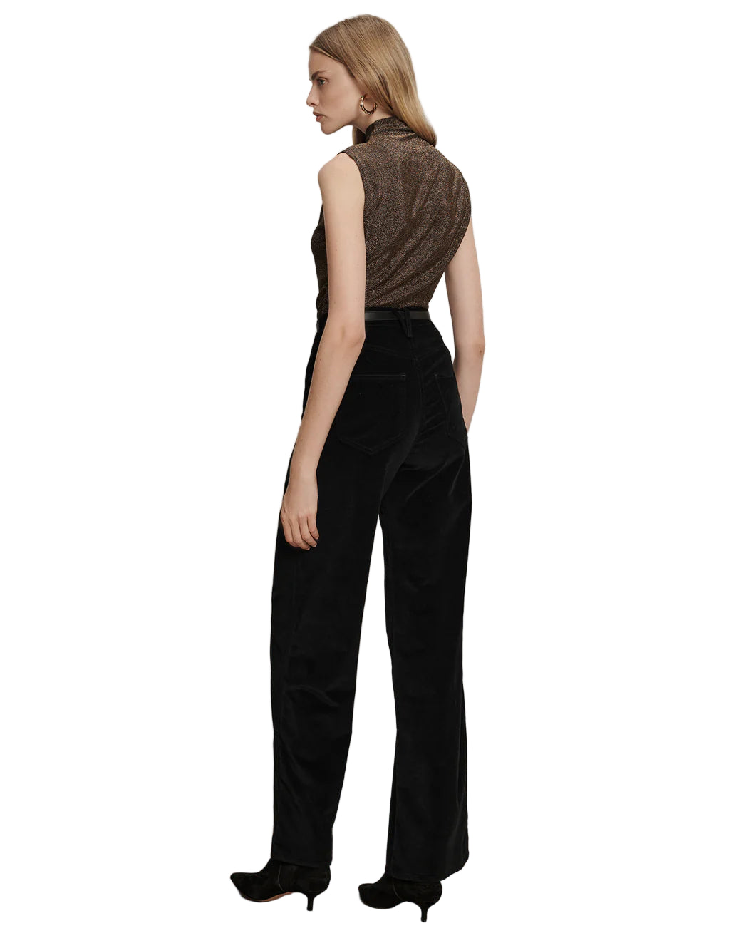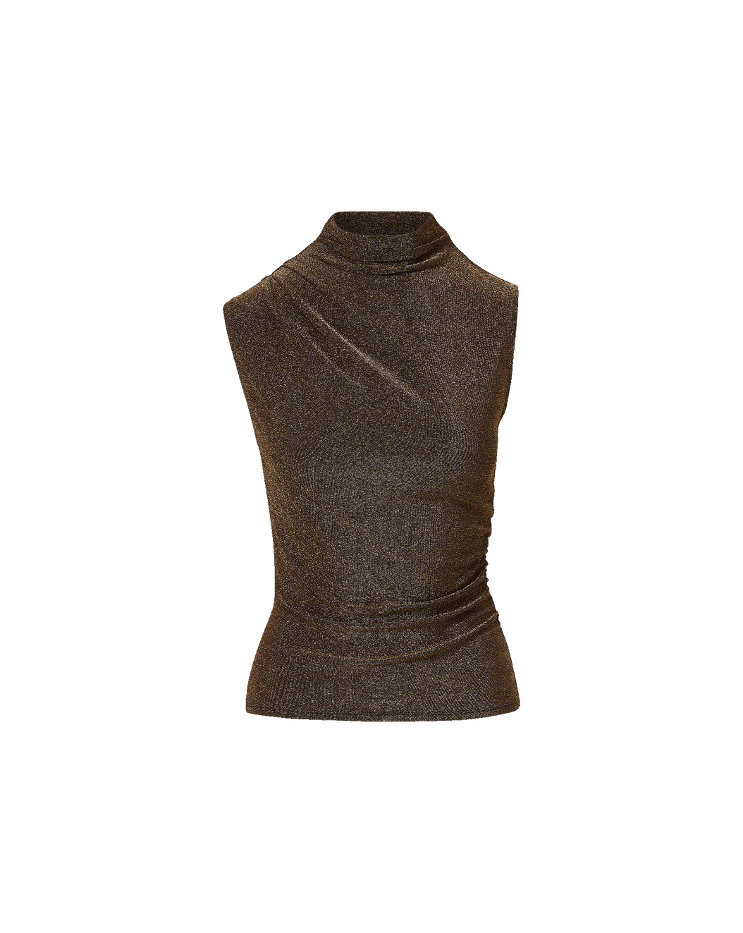 • Crafted from a stretch blend in striking metallic gold, the Mylie reimagines the classic tank with a mock neck and gentle side ruching
