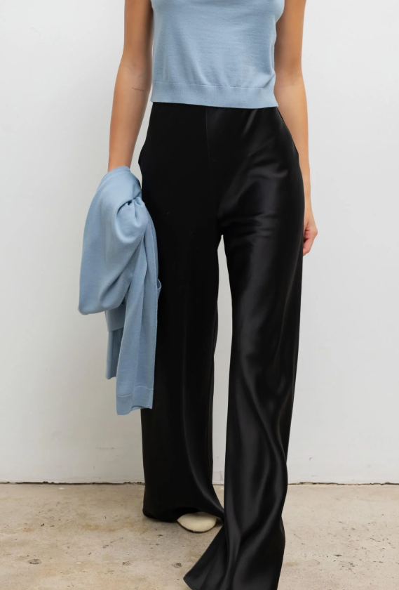 - Cut in Japanese-crafted Barb Satin, The Barb Bias Pant is an easy, pull-on style pant that perfectly drapes to flatter the form